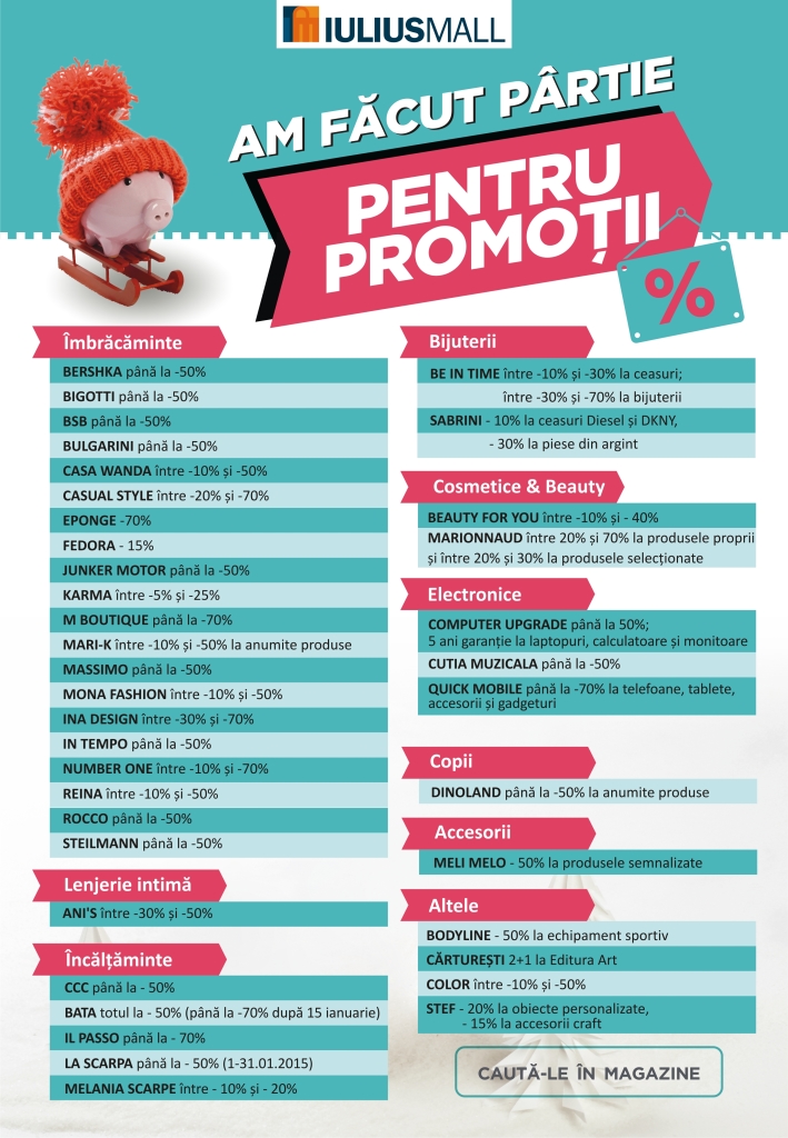 Lista completă a promoţiilor de sezon se găseşte pe site-ul www.iuliusmall.com/iasi.
