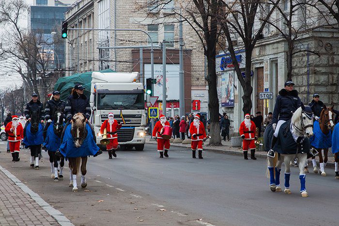 Pomul de Crăciun a fost transportat pe artera principală a capitalei, bulevardul Ștefan cel Mare și Sfânt, însoțit de un alai format din orchestră, Moși Crăciuni și călăreți. Astfel, în premieră, ceremonia de aducere a bradului s-a desfășurat ca în marile orașe europene.