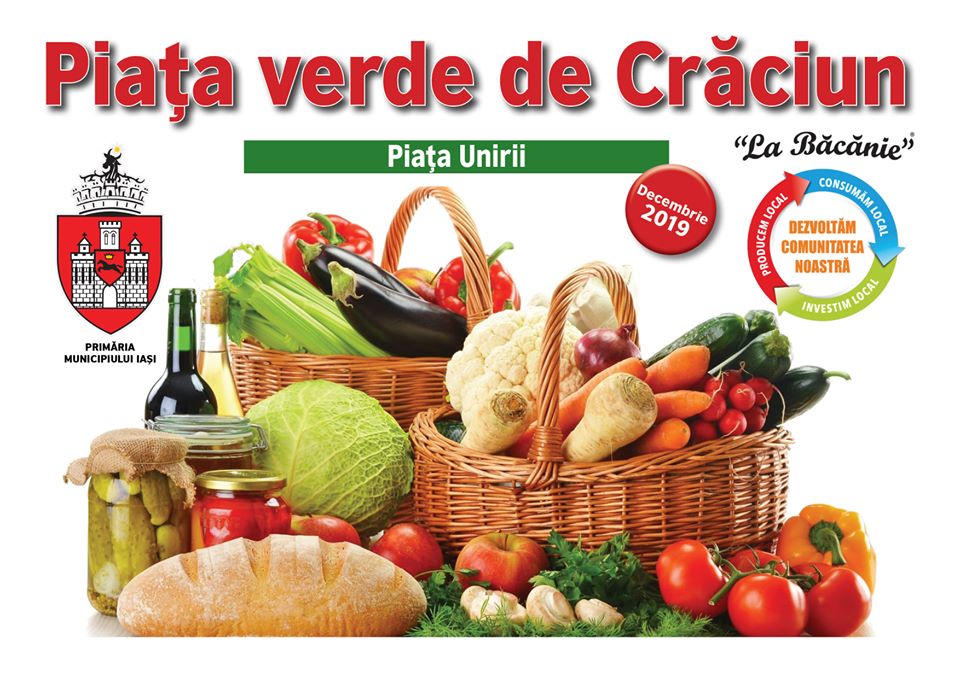 Primăria Municipiului Iași și Asociația Magazinelor de proximitate “La Băcănie” anunţă organizarea în perioada 11 – 24 decembrie a evenimentului intitulat „Piața verde de Crăciun”. Astfel, în intervalul mai sus menţionat, în Piața Unirii va fi amplasat un cort mare, unde producătorii locali îşi vor expune produsele. “Consumatorii au ocazia să cumpere o gamă largă de produse, de la preparate din carne, produse pe bază de lavandă, produse de panificație, zacuscă și dulceață, cafea, hăinuțe pentru copii făcute în Lețcani, sirop de cătină și uleiuri presate la rece, vin de la Crama Varzari, vin de mure de la Butea, globuri pictate și alte produse hand made”, anunţă organizatorii, într-un comunicat. Scopul evenimentului este de a susține consumul produselor românești și, astfel, de a sprijini economia locală. Programul va fi zilnic de la ora 10.00 la ora 22.00. (E.M.)