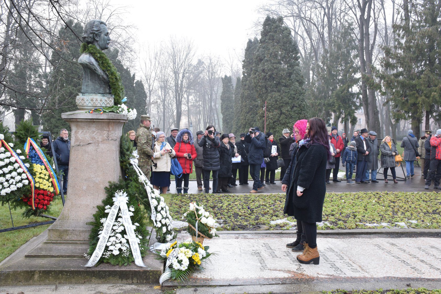 Cu prilejul aniversării a 170 de ani de la nașterea poetului național şi a Zilei Culturii Naţionale, în organizarea Casei de Cultură „Mihai Ursachi” a Municipiului, la Iaşi au avut loc marţi, 14 ianuarie, şi miercuri, 15 ianuarie, o serie de manifestări dedicate acestor evenimente. Astfel, sub genericul “Eminescu 170”, marţi, 14 ianuarie, începând cu ora 13.00, mai mulţi scriitori din România şi Republica Moldova au susţinut recitaluri de poezie la Colegiul Național și la Colegiul Naţional „Costache Negruzzi”. La eveniment au participat scriitorii Adi Cristi, Silvia Goteanschii (Republica Moldova), Radmila Popovici (Republica Moldova), Rodica Gotcă (Republica Moldova), Horia Zilieru şi poetele Anca Iulia Raicu, de la Colegiul Tehnic „Gheorghe Asachi”, şi Alexandra Ţabără, de la Colegiul Naţional. În cadrul aceluiaşi eveniment, elevii Colegiului Naţional „Costache Negruzii” au ascultat recitalurile susţinute de scriitorii Valeriu Stancu, Emilian Marcu, Zina Bivol (Republica Moldova), Diana Vrabie (Republica Moldova) şi de tinerii poeţi Mihai Dumitraş (Colegiul Naţional „Costache Negruzzi”) şi Marilena Cătălina Hârţan (Colegiul Naţional de Artă „Octav Bancilă”). Miercuri, 15 ianuarie, sub genericul „Eminescu, Măria Ta!”, la ora 12.00, în prezenţa autorităţilor locale şi a unui numeros public, la bustul marelui poet din Parcul Copou au fost depuse jerbe de flori şi au fost rostite alocuţiuni cu privire la moştenirea culturală pe care Mihai Eminescu a lăsat-o poporului român. Au depus jerbe de flori Instituţia Prefectului Judeţului Iași, Consiliul Județean Iași, Primăria Municipiului Iași, Garnizoana Iași, Muzeul Național al Literaturii Române Iași, Ateneul Național Iași, Muzeul Municipal Iași, Casa de Cultură „Mihai Ursachi” a Municipiului Iași, Uniunea Teatrală din România (UNITER), Uniunea Scriitorilor din România – Filiala Iași, Uniunea Artiștilor Plastici din România – Filiala Iași, Universitatea Națională de Arte „George Enescu” din Iași, Universitatea „Petre Andrei” Iași, Universitatea „Apollonia” Iași, Colegiul Național „Garabet Ibrăileanu”, Colegiul Național „Mihai Eminescu”, Asociația „Crezul Basarabiei”, Cenaclul „Ia’și scrie”, Școala „Ion Creangă”. După depunerea de coroane de flori au ținut alocuțiuni Marian Tudoran – subprefectul judeţului Iaşi, Maricel Popa, președintele Consiliului Județean Iași, și Mihai Chirica, primarul Municipiului Iași. Începând cu ora 12.30, în sala de spectacole „Diotima” a Casei de Cultură “Mihai Ursachi” a Municipiului Iaşi, a avut loc un spectacol de muzică şi poezie. Printre protagoniştii evenimentului s-au numărat actorul George Marici, cantautorul Cezar Popescu şi scriitorii Zina Bivol (Republica Moldova), Rodica Gotcă (Republica Moldova), Silvia Goteanschii (Republica Moldova), Emilian Marcu (România), Radmila Popovici (Republica Moldova), Valeriu Stancu (România), Diana Vrabie (Republica Moldova), Horia Zilieru (România). La eveniment au fost prezenţi, de asemenea, elevi de la mai multe colegii ieșene de renume, care au recitat poezii din creaţia proprie, alături de scriitorii consacraţi. (E.M.)