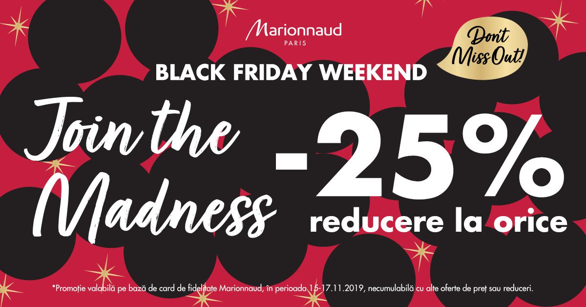 Ai auzit și tu? Black Friday nu e doar vineri, ci tot weekend-ul! Unde? La Marionnaud din Iulius Mall Iași!…